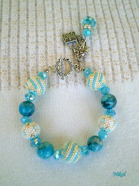 Egy kicsi kék ismét..............., valahogy mindig ehhez nyúlok, egyszerűen rabja vagyok. Segítség ... valaki .....aki kigyógyít ebből? :D :D A kisebb bogyó Tigris, a nagyobb meg 12mm- s fagolyó " saját módon " begyöngyözve. :) Kár hogy nem fotóztam le magában, olyan aranyos csillag alakú a két vége. :) Pff , meg megint a csillagok.... :) :)